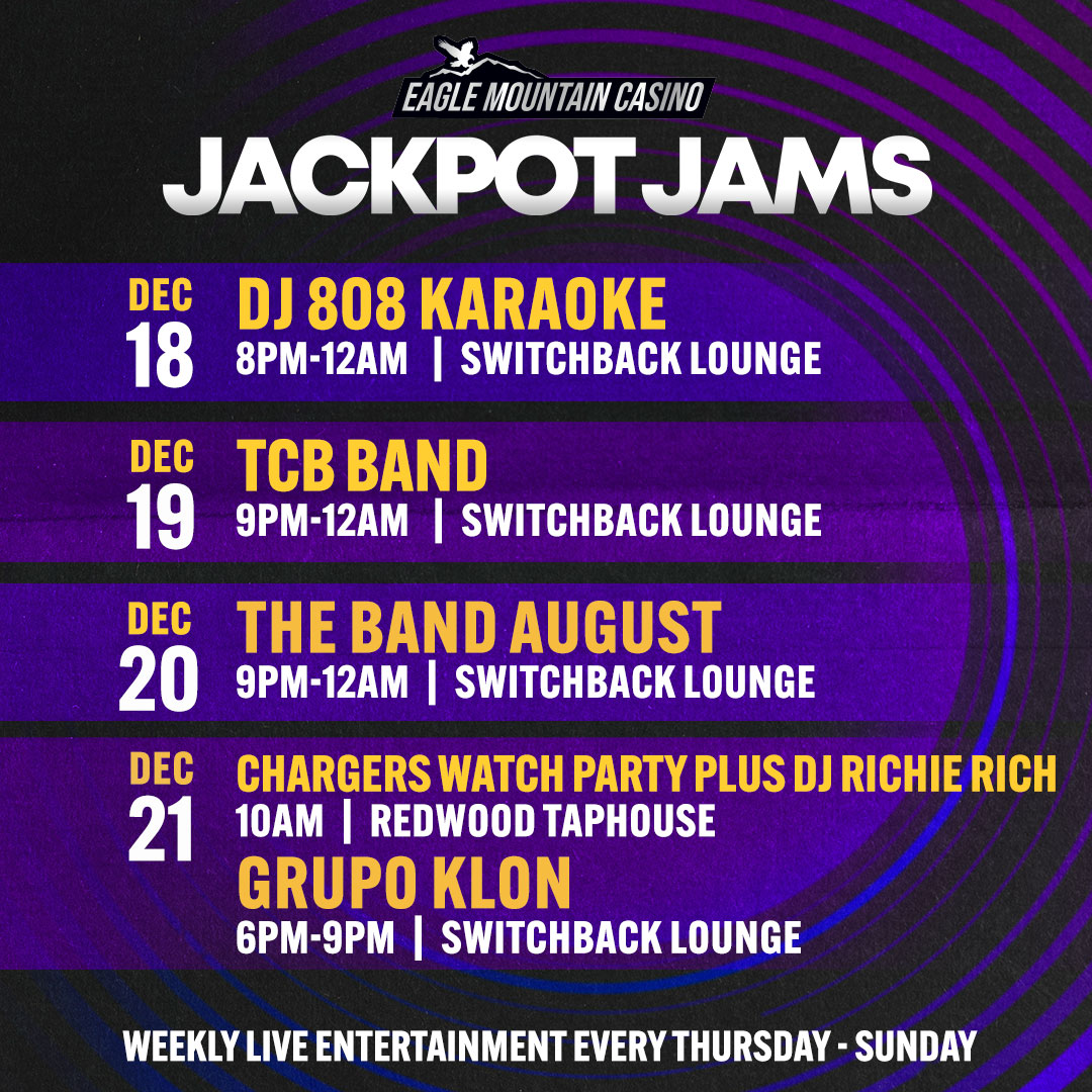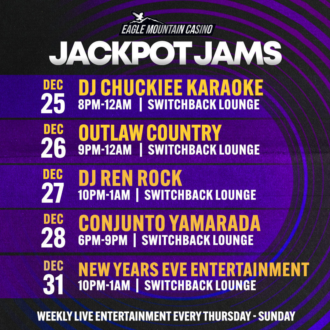 With our new 2000 seat state-of-the-art event center, you can enjoy top name entertainment just a short drive away. From live game shows to the best in comedy shows, and top music artists in country, Spanish, and classic R&B, you will not want to miss out on the fun and excitement. Come on down to Eagle Mountain Casino and experience the best entertainment!