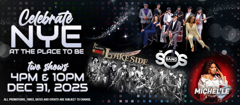 Join us on New Year’s Eve for an Unforgettable Concert featuring S.O.S Band, The Original Lakeside, and Michel’le. Don’t miss out on a night to remember! Doors open at 3:30pm.